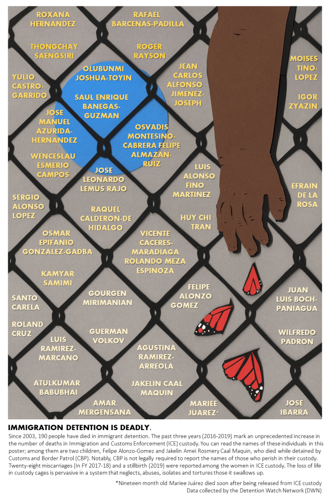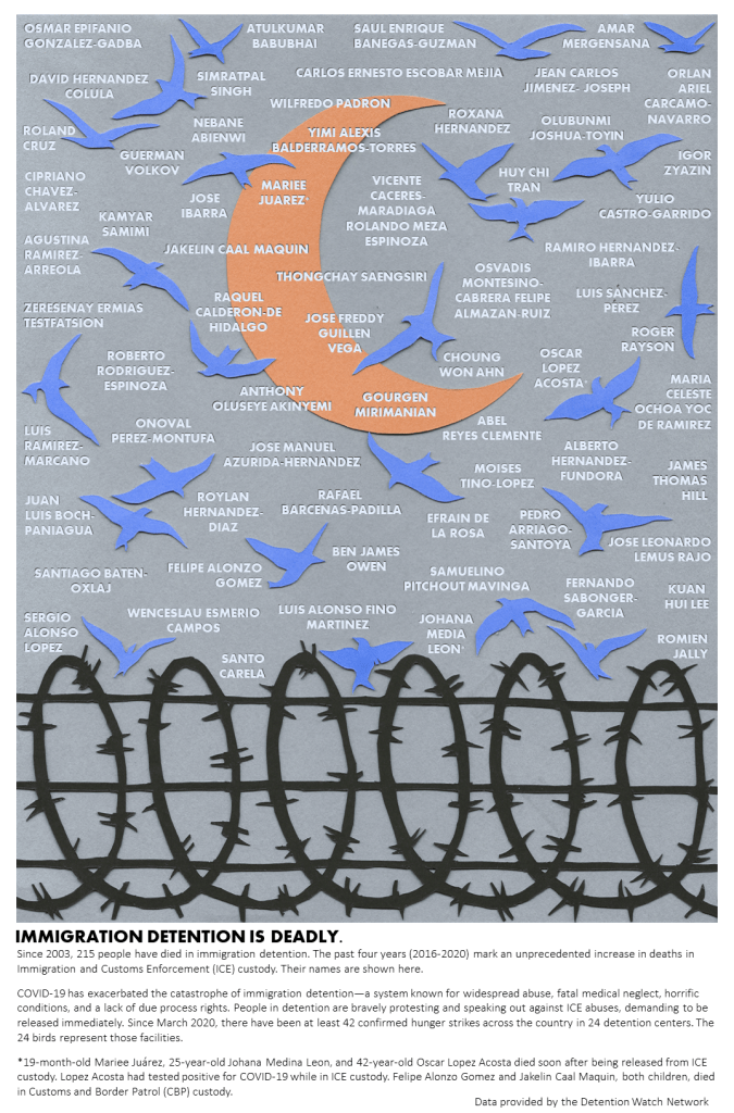 2020 CUT PAPER W DIGITAL TEXT FOR DETENTION WATCH NETWORK. NAMES OF PEOPLE WHO DIED IN ICE CUSTODY FROM 2013-2020