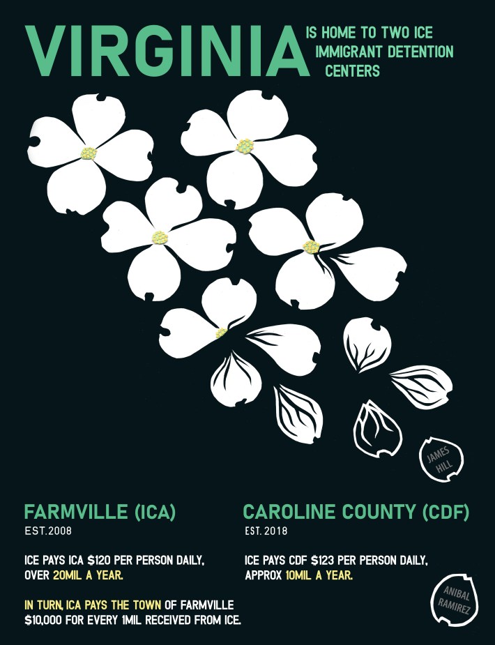 CUT PAPER W DIGITAL TEXT FOR RESISTENCIA VA TO RAISE AWARENESS ABOUT DETENTION CENTERS IN VIRGINIA